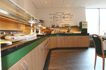 Unser neu renoviertes großes Lokal bietet Platz für bis zu 60 Gäste. Egal ob für ein gemütliches Frühstück oder fürs Essen gehen mit der Familie.